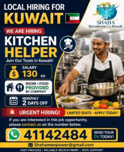 LOCAL HIRING IN KUWAIT Job Category: Kitchen helper Job Type: Full Time Job Location: Kuwait Apply for this position Full Name *Email *Phone *Cover Letter *Upload CV/Resume *Allowed Type(s): .pdf, .doc, .docxBy using this form you agree with the storage and handling of your data by this website. * Post navigation Car delivery boyUrgent Requirment in kuwait from india